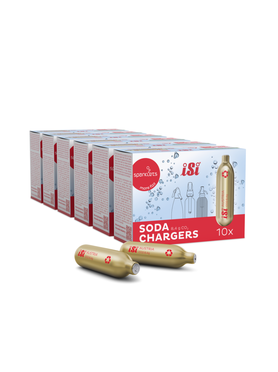Die iSi Sodakapseln enthalten genau die Menge CO₂, die du für eine Flasche feinperliges Sodawasser brauchst – ohne Verschwendung. Einfach einsetzen, aufdrehen, sprudeln – für erfrischende Getränke in Sekundenschnelle. Jede Kapsel garantiert gleichbleibende Qualität und ist optimal auf alle iSi Sodageräte und Sprudler abgestimmt.