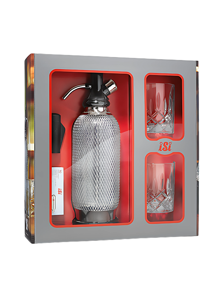 Mit dem iSi Sodamaker Classic Geschenkset verschenkst du nicht nur einen Sodamaker – sondern einen täglichen Moment von Stil, Nachhaltigkeit und feiner Perlage. Der hochwertige Sodamaker im Edelstahlgehäuse verbindet Form und Funktion auf elegante Weise und bringt prickelnden Genuss direkt an den Tisch. Kein Plastik, kein Strom, kein Aufwand – nur echtes Sodawasser auf Knopfdruck.