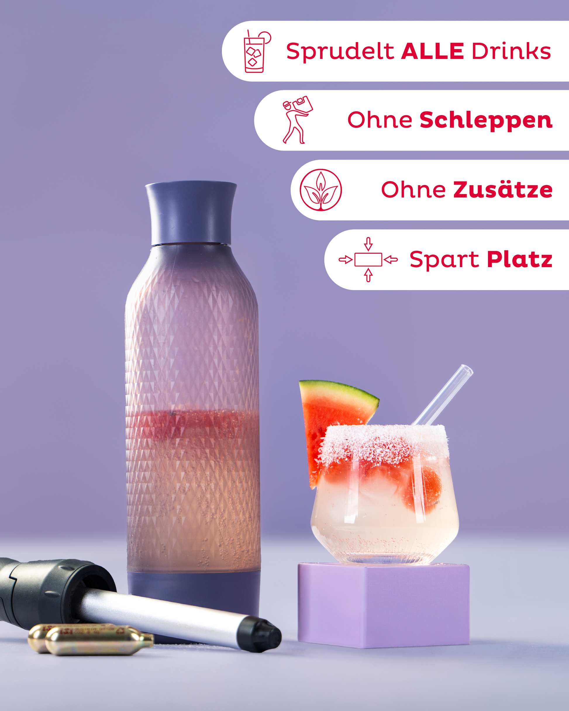 Sprudle jedes Getränk! Wasser, Säfte, Cocktails oder Tee. Unbegrenzte Möglichkeiten!