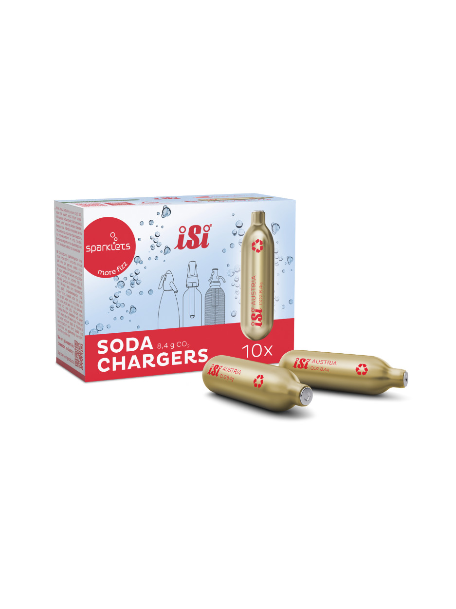 Die iSi Sodakapseln enthalten genau die Menge CO₂, die du für eine Flasche feinperliges Sodawasser brauchst – ohne Verschwendung. Einfach einsetzen, aufdrehen, sprudeln – für erfrischende Getränke in Sekundenschnelle. Jede Kapsel garantiert gleichbleibende Qualität und ist optimal auf alle iSi Sodageräte und Sprudler abgestimmt.
