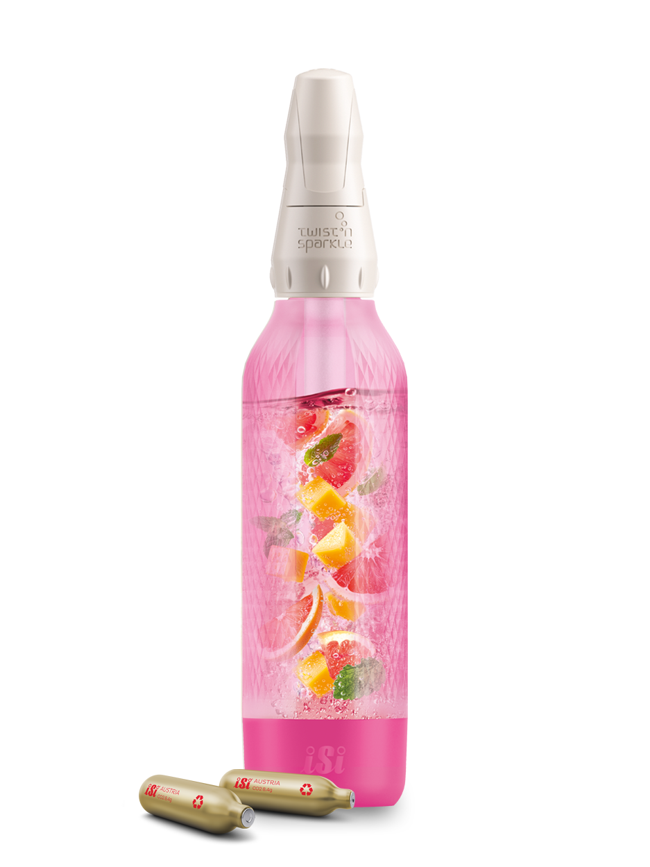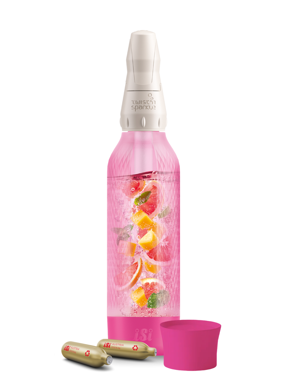 Ob Wasser, Cocktails oder Säfte: Mit dem Twist’n Sparkle Virtuoso sprudelst du alles was du liebst, direkt in der Flasche. Einfach Flasche mit deinen Lieblingszutaten befüllen, iSi Sodakapsel einsetzen, zudrehen – und in Sekunden prickelt dein Lieblingsgetränk. Die patentierte "iSi CO2 Infusion Technologie" sorgt für perfekten Sprudel – direkt in der Flasche. Profi-Tipp: Je kälter das Getränk, desto sprudeliger wird es. Der optimale Fizz entsteht bei ca. 6 Grad Celcius. Eine Zusatzflasche eignet sich optimal, um Getränke vorzukühlen.